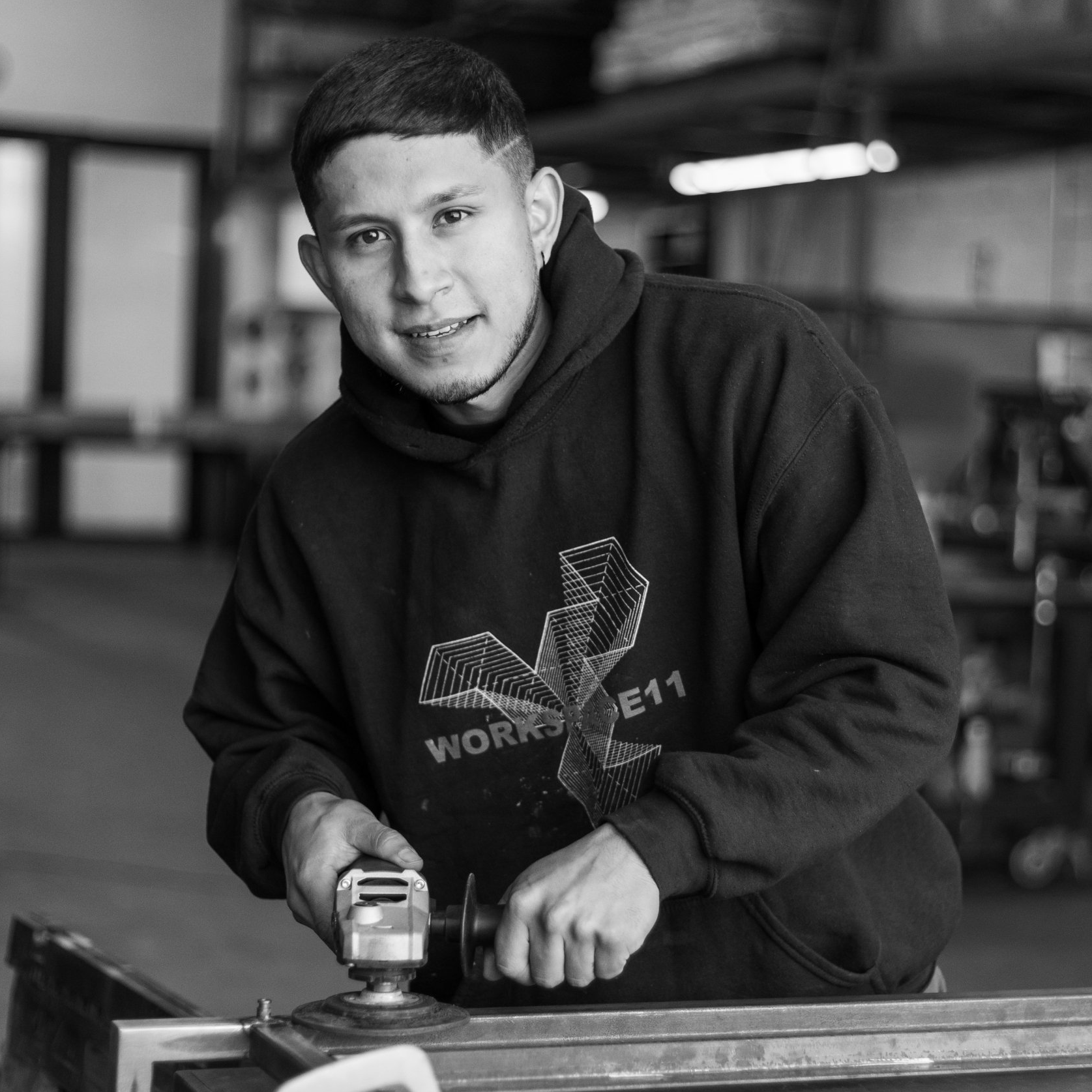 Carlos Culcay, the Shop Manager and Lead Fabricator at Workspace11, is currently immersed in the meticulous restoration of a substantial steel door.