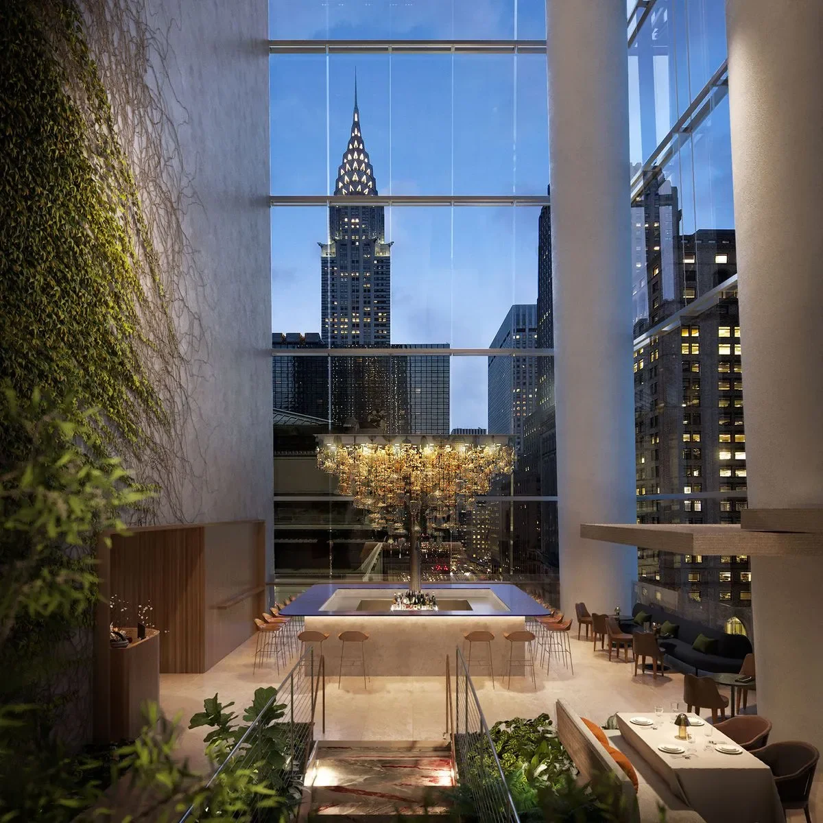 Workspace11 collaborated with One Vanderbilt and Chef Daniel Boulud to create the vibrant bar and entry staircase at Le Pavillon, a restaurant that blends fine dining with a sense of nature and light.