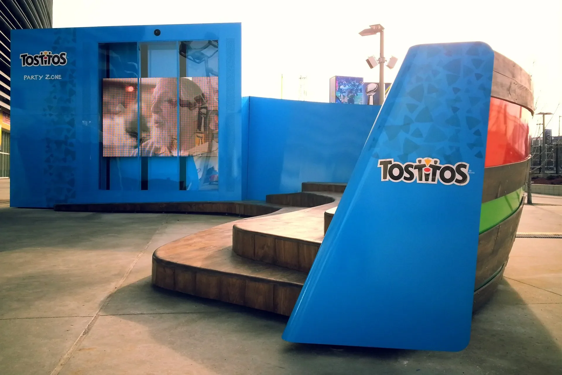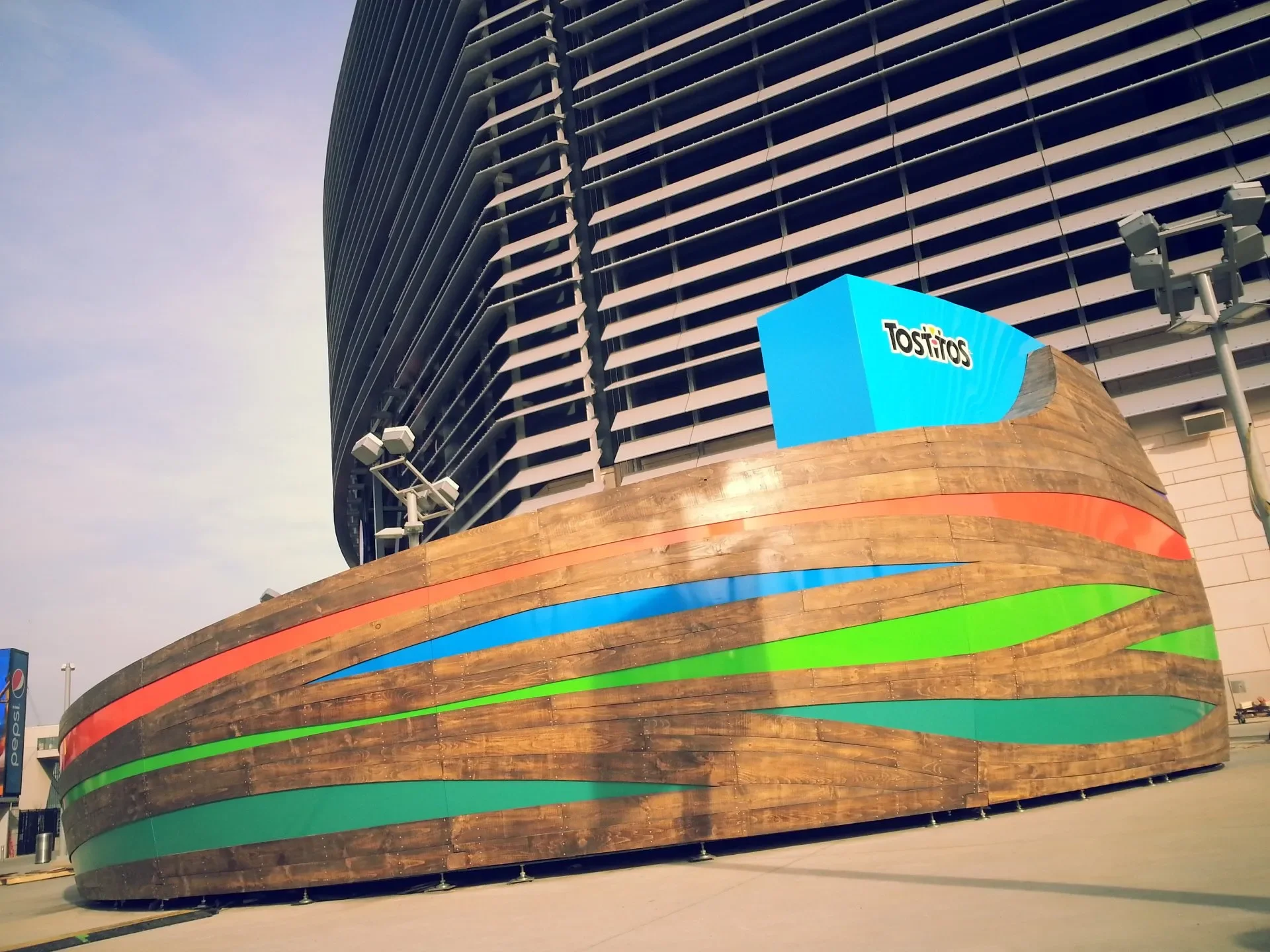 Workspace11 collaborated with 3M/GTG and AUXOFFICE Architects to engineer and fabricate a 15-foot interactive multimedia tower and a 30-foot-radius seating pavilion for the Pepsi Halftime Show at Super Bowl XLVIII, held at MetLife Stadium.