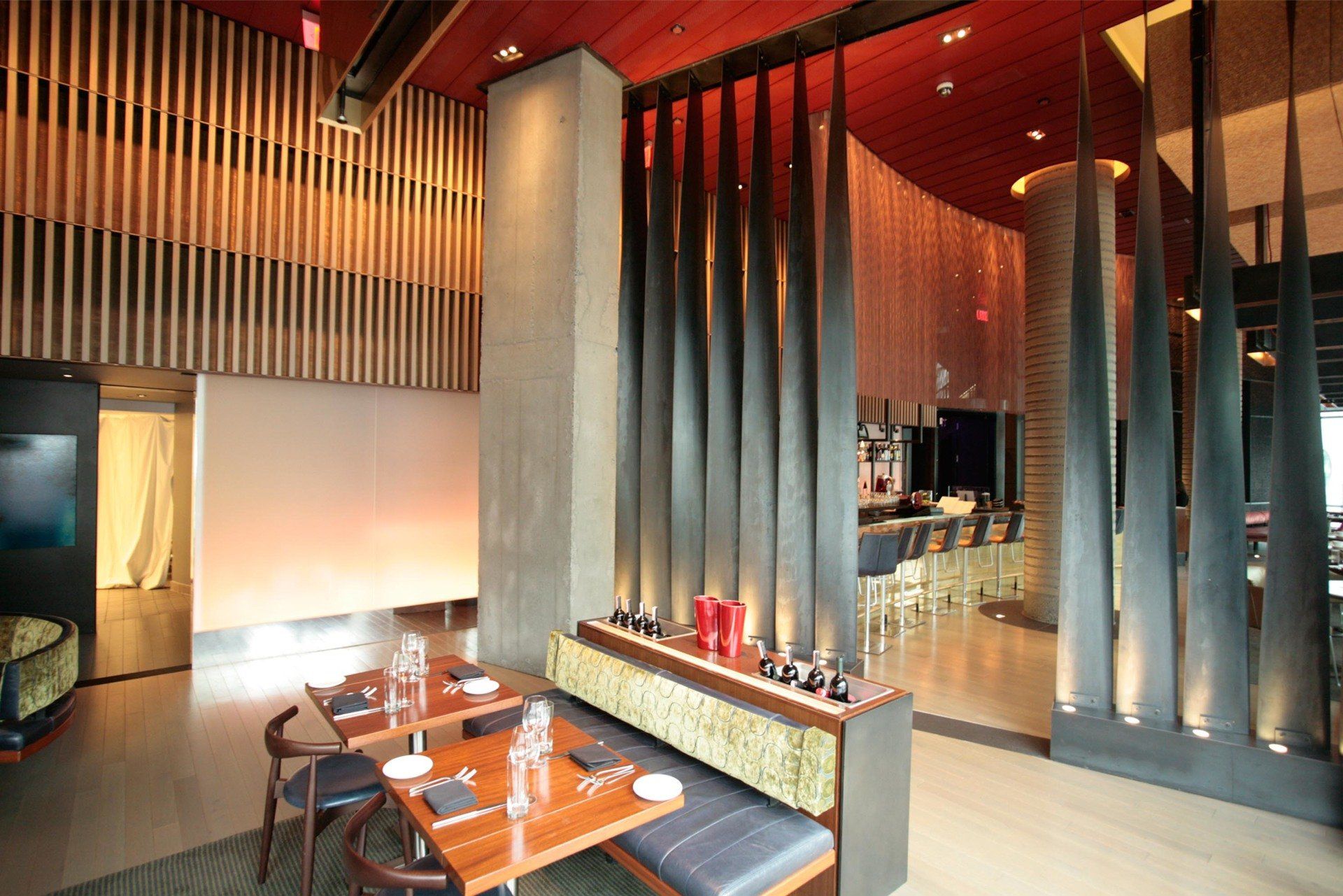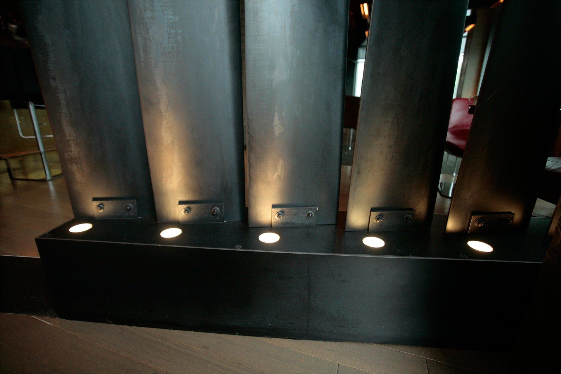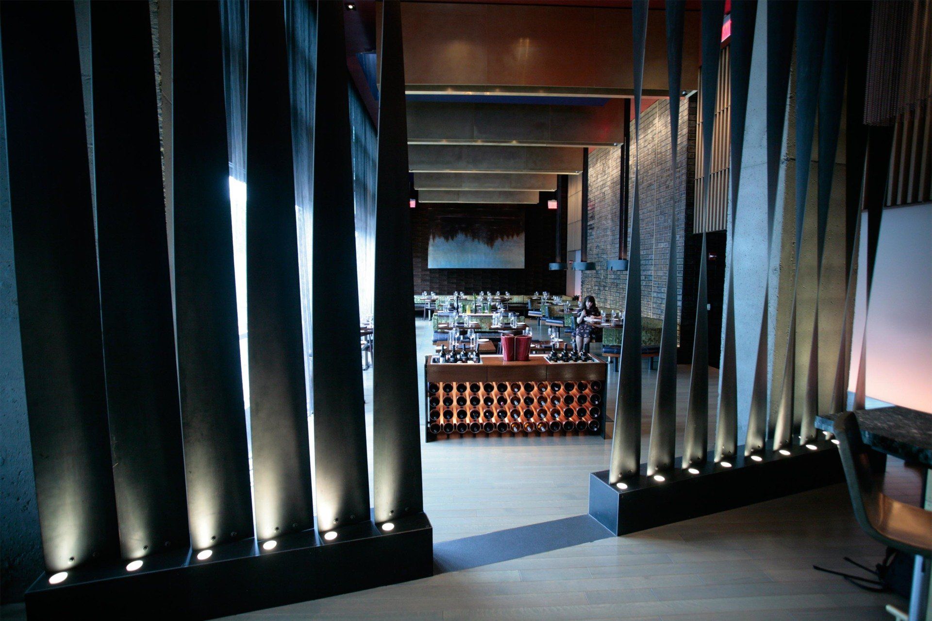 Workspace11 worked with Bentel&Bentel Architects to engineer and fabricate a sixteen-foot tall twisted metal screen that divided the restaurant and main bar of theW hotel. We hung stainless steel beam enclosures in the main lobby, fifty feet in the air and created large bronze candelabras for the lobby.
