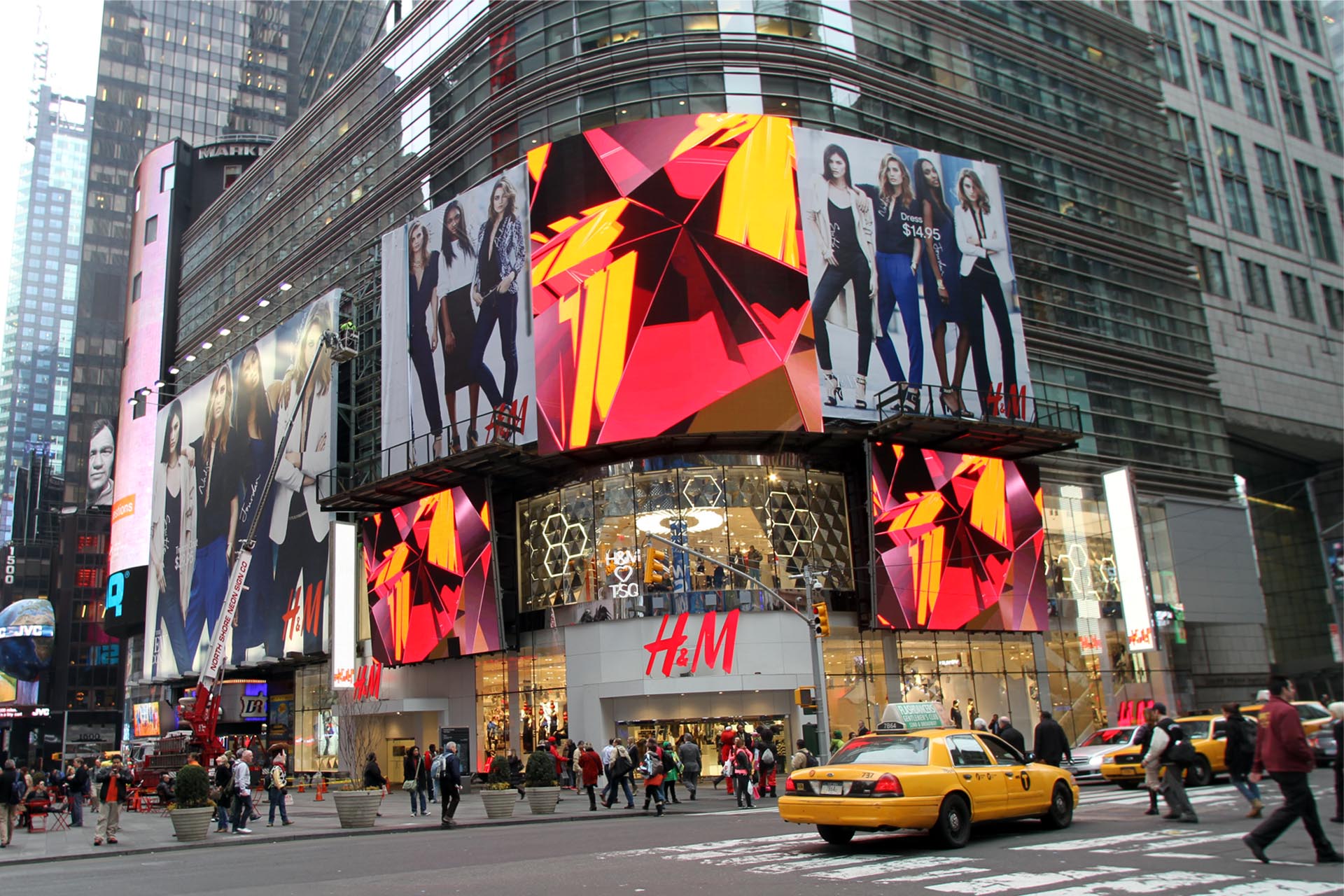 Workspace 11 was also commissioned to design, engineer, and fabricate a mechanically operable 24’x40′ window display mounted within the curtain wall for H&M in Penn Station.