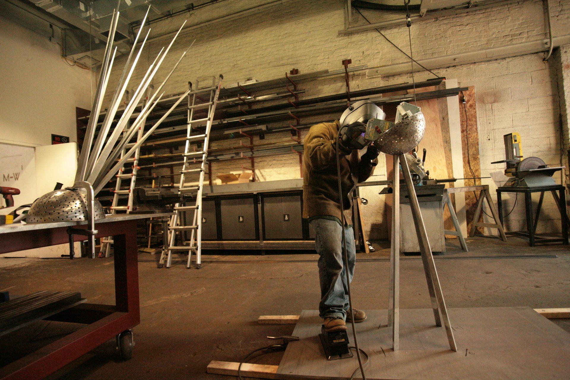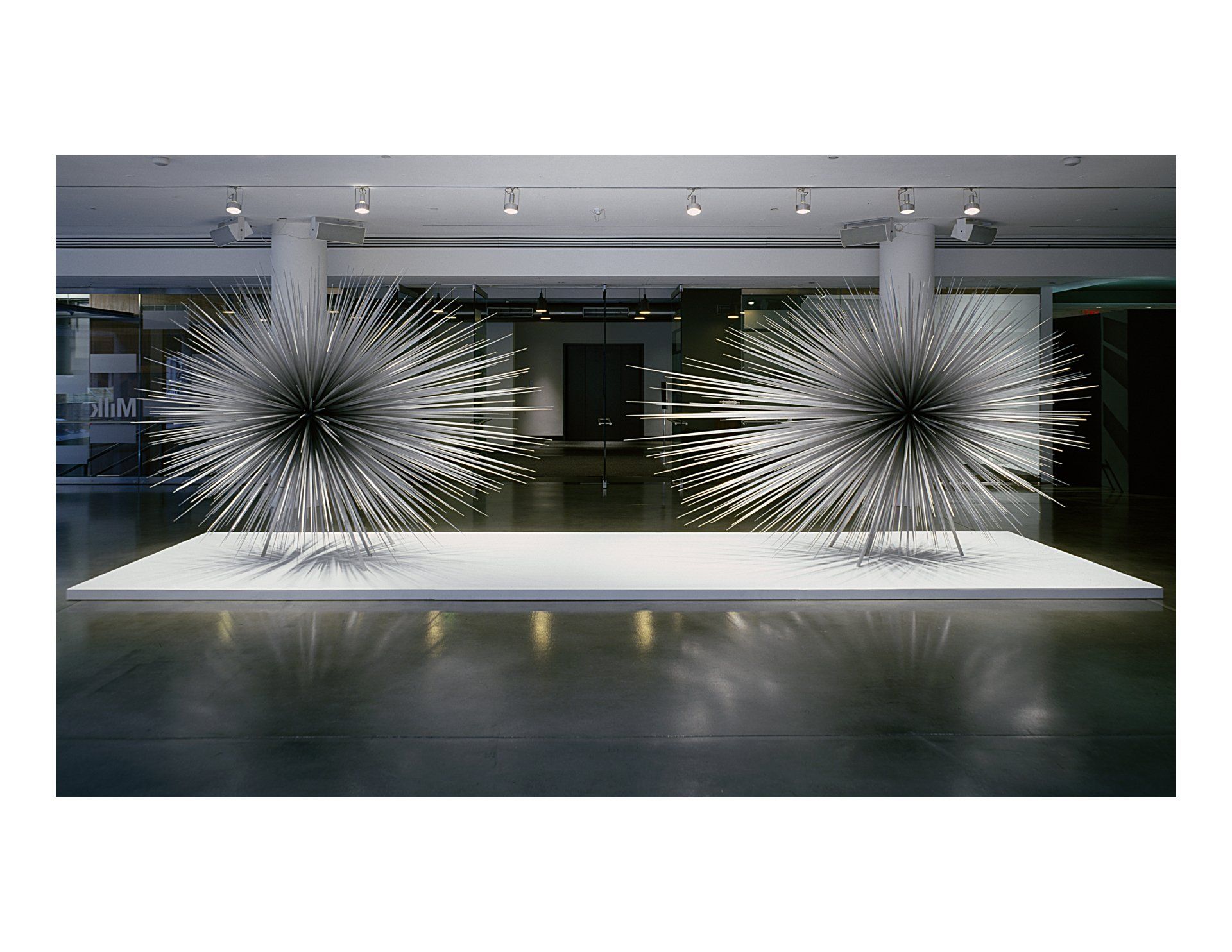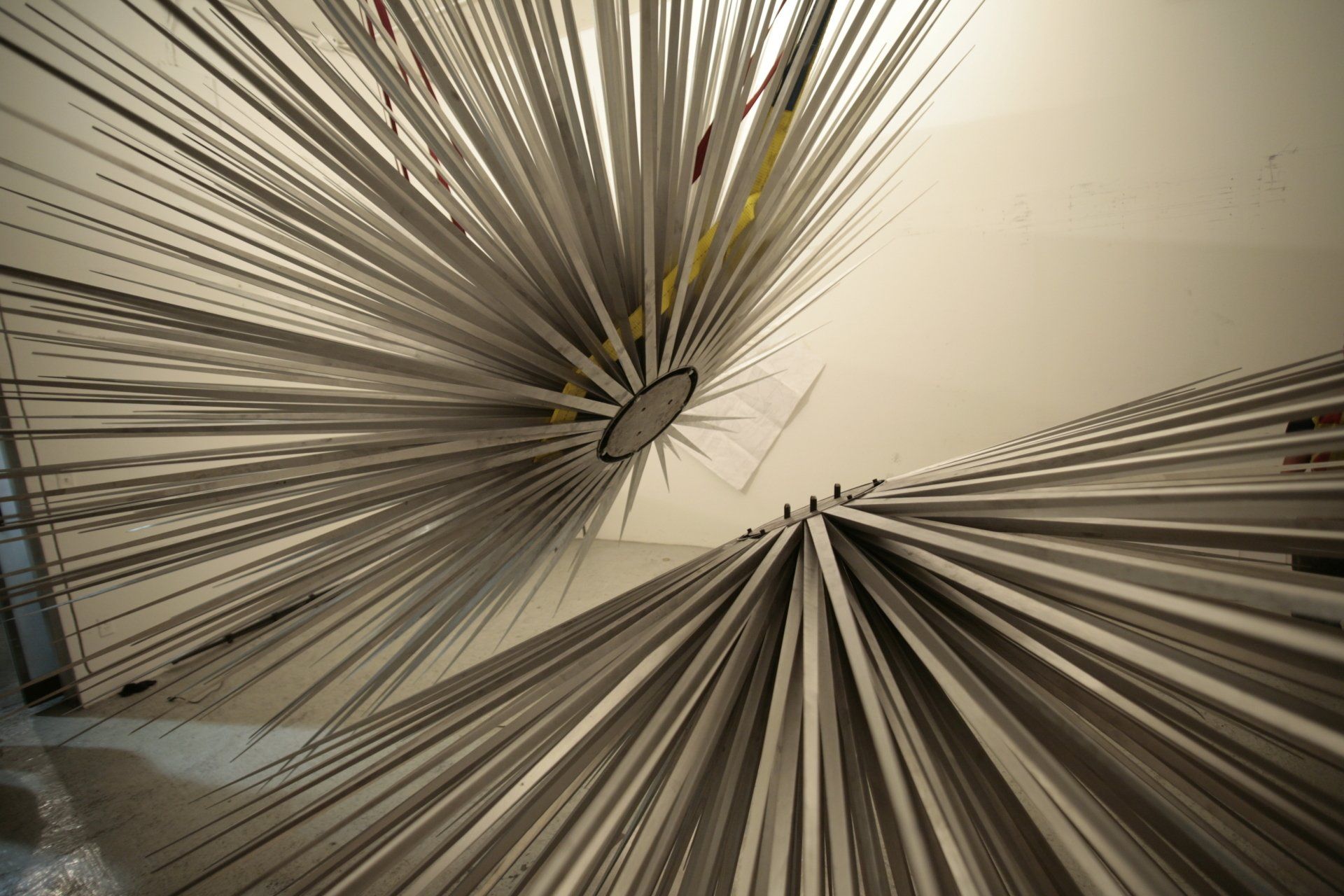 Stars No.1 & 2 by Artist Norman Mooney. These 96" x 96" x 144" dynamic sculpture pieces are fully fabricated from aluminum with our engineering team creating a complex form to produce these powerful pieces.